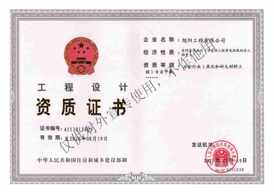 2021年8月19日,工程公司成功取得工程設(shè)計(jì)冶金行業(yè)(焦化及耐火材料工程)專(zhuān)業(yè)甲級(jí)資質(zhì)。此次資質(zhì)順利升甲,是工程公司資質(zhì)建設(shè)的一項(xiàng)重大突破。此次資質(zhì)順利升甲,為公司承接各等級(jí)焦化工程設(shè)計(jì)業(yè)務(wù)提供了政策支持,拓寬了公司發(fā)展平臺(tái)。
